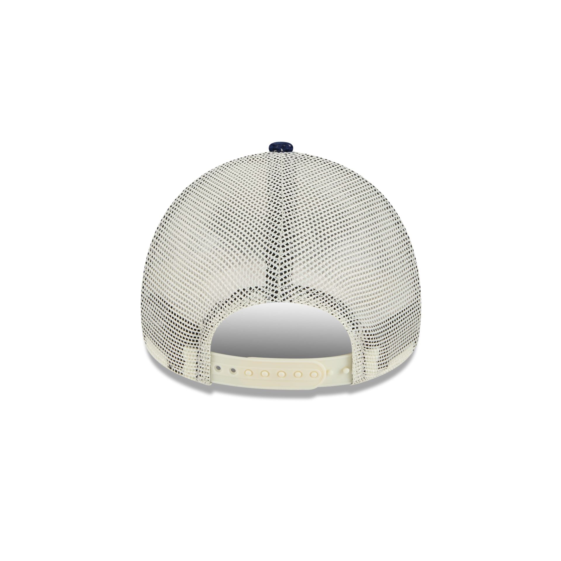 The Boston Bruins Knit Women's 9FORTY A-Frame Trucker features an embroidered Bruins logo at the front knit panels. Additional details include a snapback closure at a mesh rear and white undervisor.