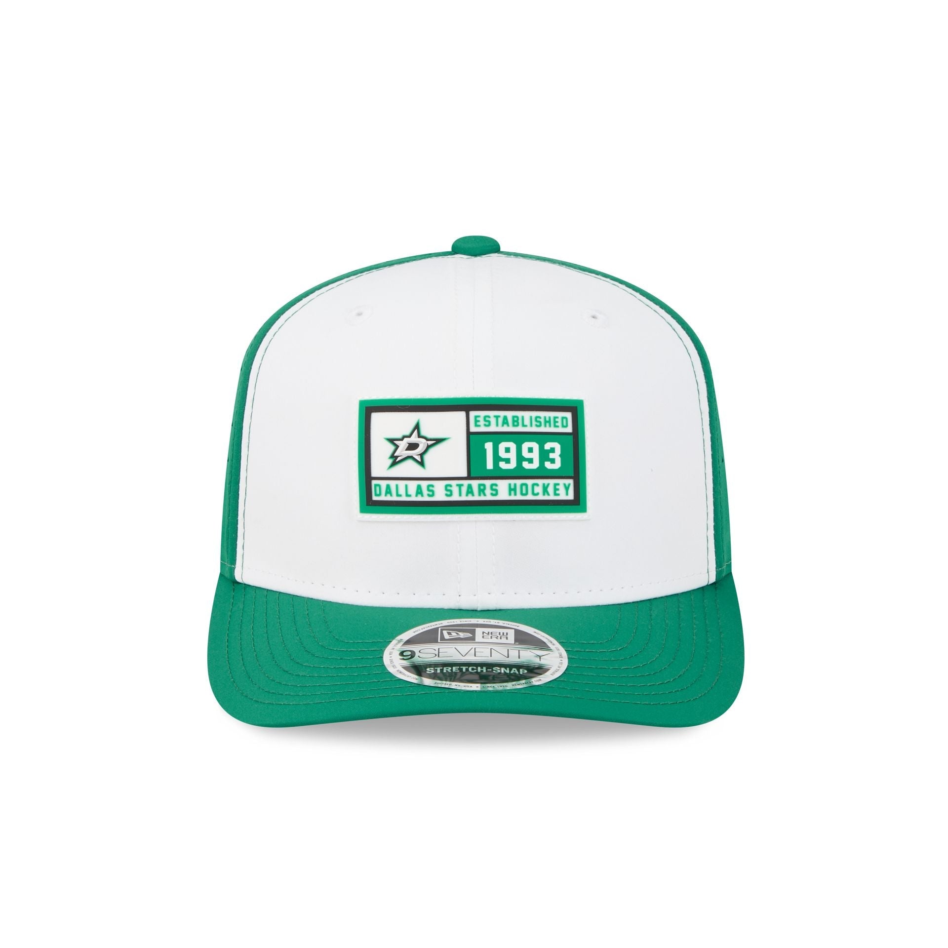 The Dallas Stars Est. Patch 9SEVENTY Stretch-Snap features a woven silicone Stars establishment patch at the front panels with a slant-snap closure at a performance mesh rear and a gray undervisor.