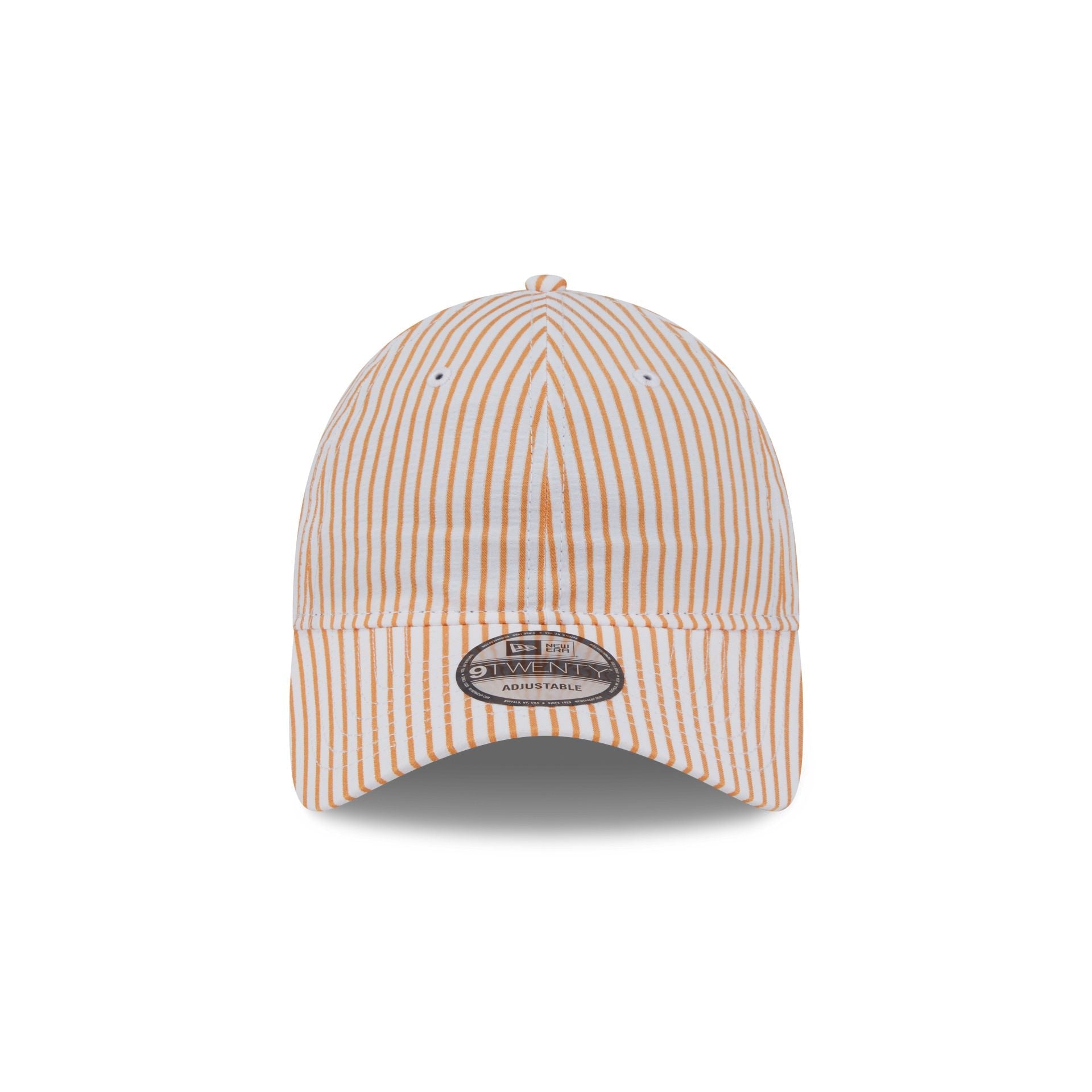The Orange Pinstripe 9TWENTY Adjustable Cap features a pinstripe fabrication throughout with a New Era Flag at the left-wear side and an adjustable D-Ring closure at the rear.