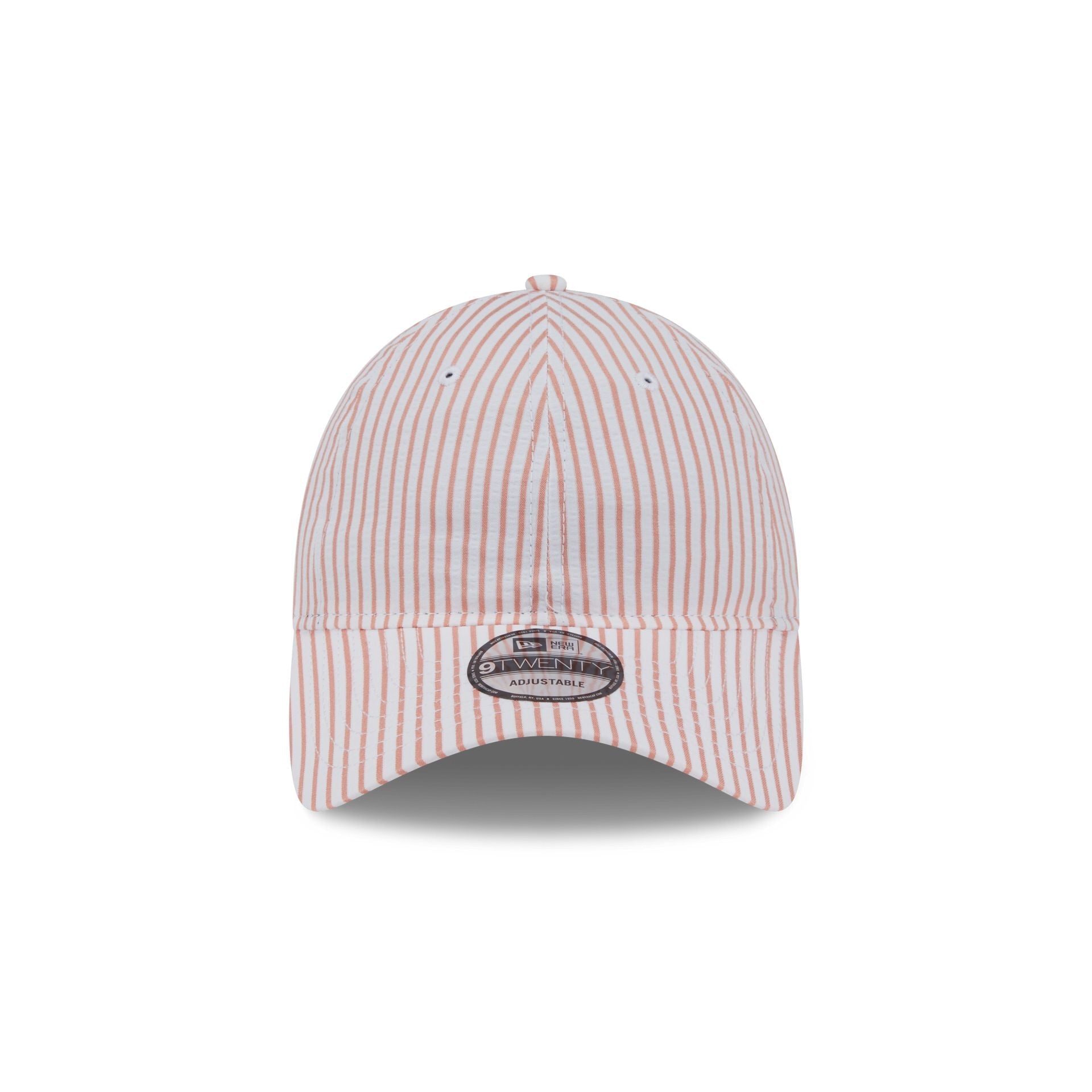 The Peach Pinstripe 9TWENTY Adjustable Cap features a pinstripe fabrication throughout with a New Era Flag at the left-wear side and an adjustable D-Ring closure at the rear.