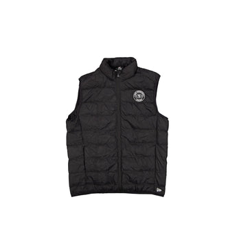 The San Francisco 49ers Logo Essentials Packable Vest features a silicone 49ers logo at the left chest with pockets and a packable case.