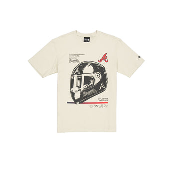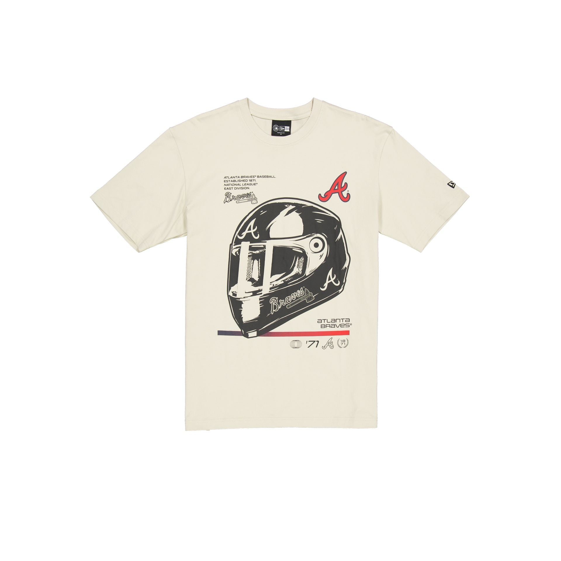The Atlanta Braves Modern Speed Stone T-Shirt features a screen-printed Braves helmet graphic a the front with team logos and wordmarks throughout.