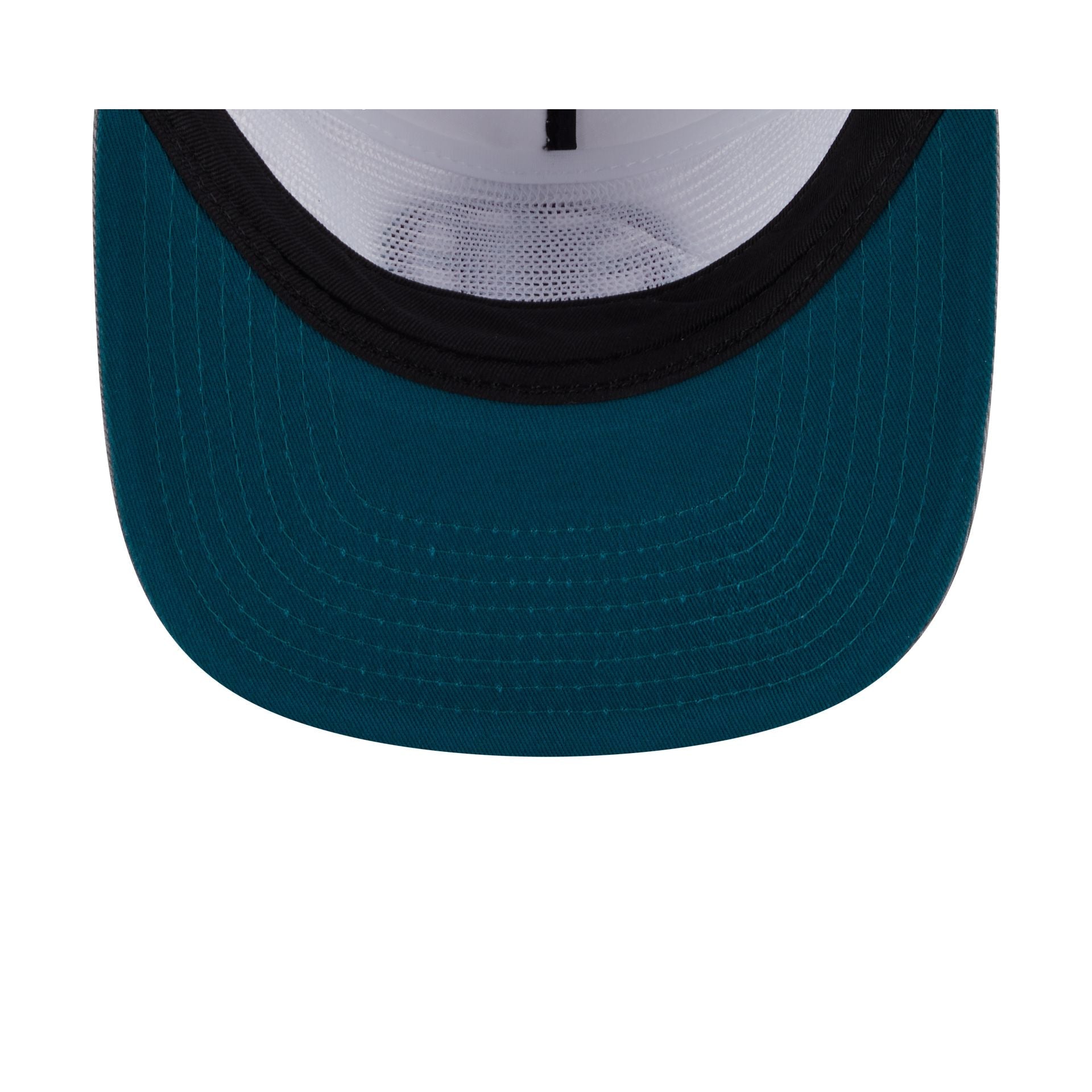 The Boston Bruins Optic White Golfer features an embroidered Bruins logo at the front panels with a matching team wordmark at the right-wear side. Additional details include a snapback closure at the rear and a teal undervisor.