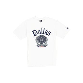 The Dallas Cowboys Throwback Prep T-Shirt features a chain-stitched Cowboys wordmark above a screen-printed team emblem at the front.