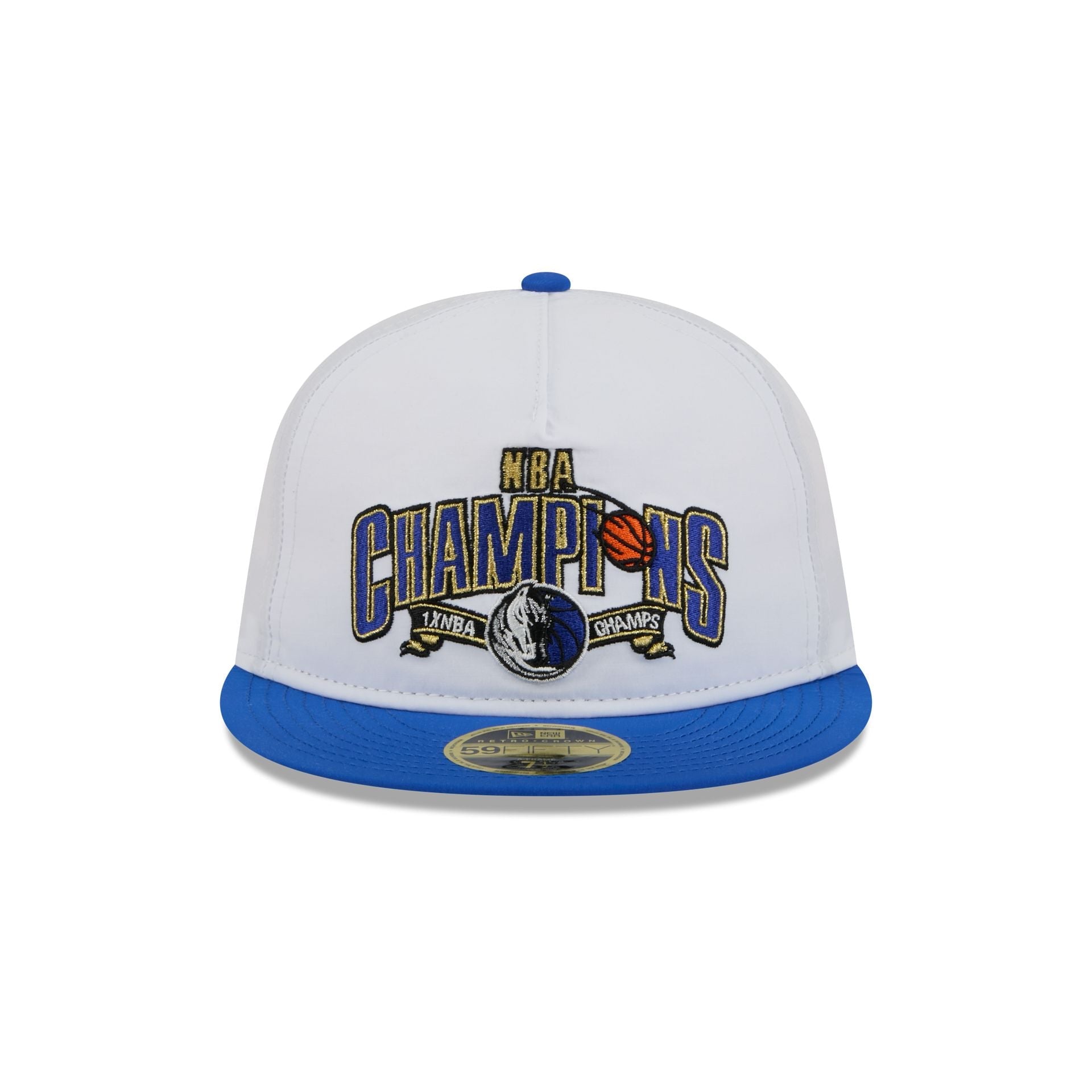 The Dallas Mavericks Champions White Retro Crown 59FIFTY Fitted Cap features an embroidered Mavericks Champions graphic at the front panels with the NBA Logoman at the rear and a gray undervisor.