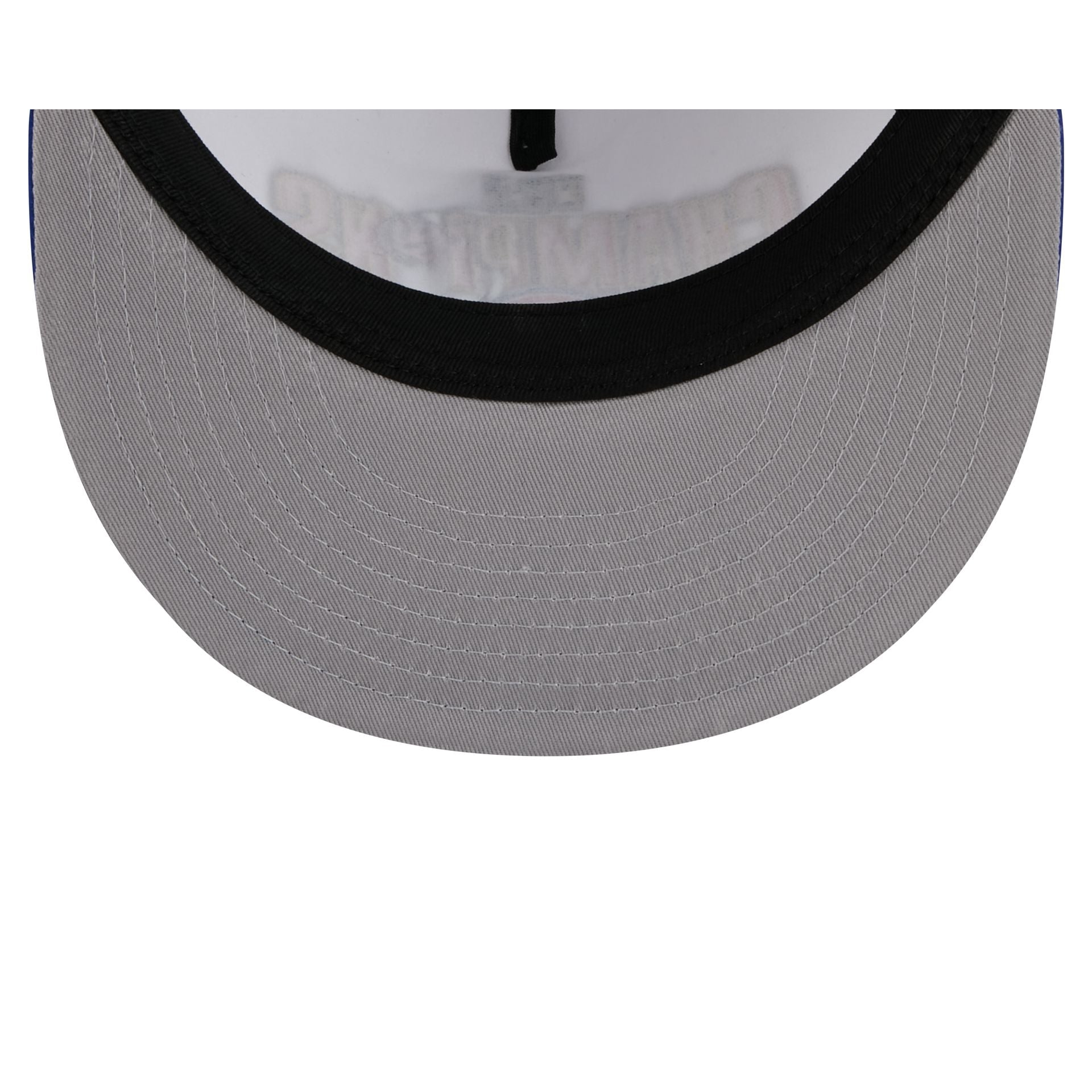 The Detroit Pistons Champions White Retro Crown 59FIFTY Fitted Cap features an embroidered Pistons Champions graphic at the front panels with the NBA Logoman at the rear and a gray undervisor.