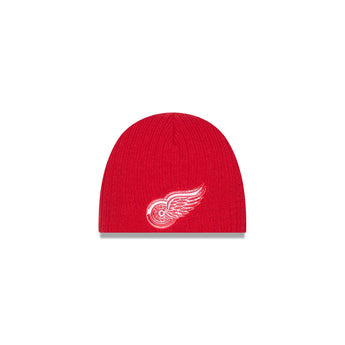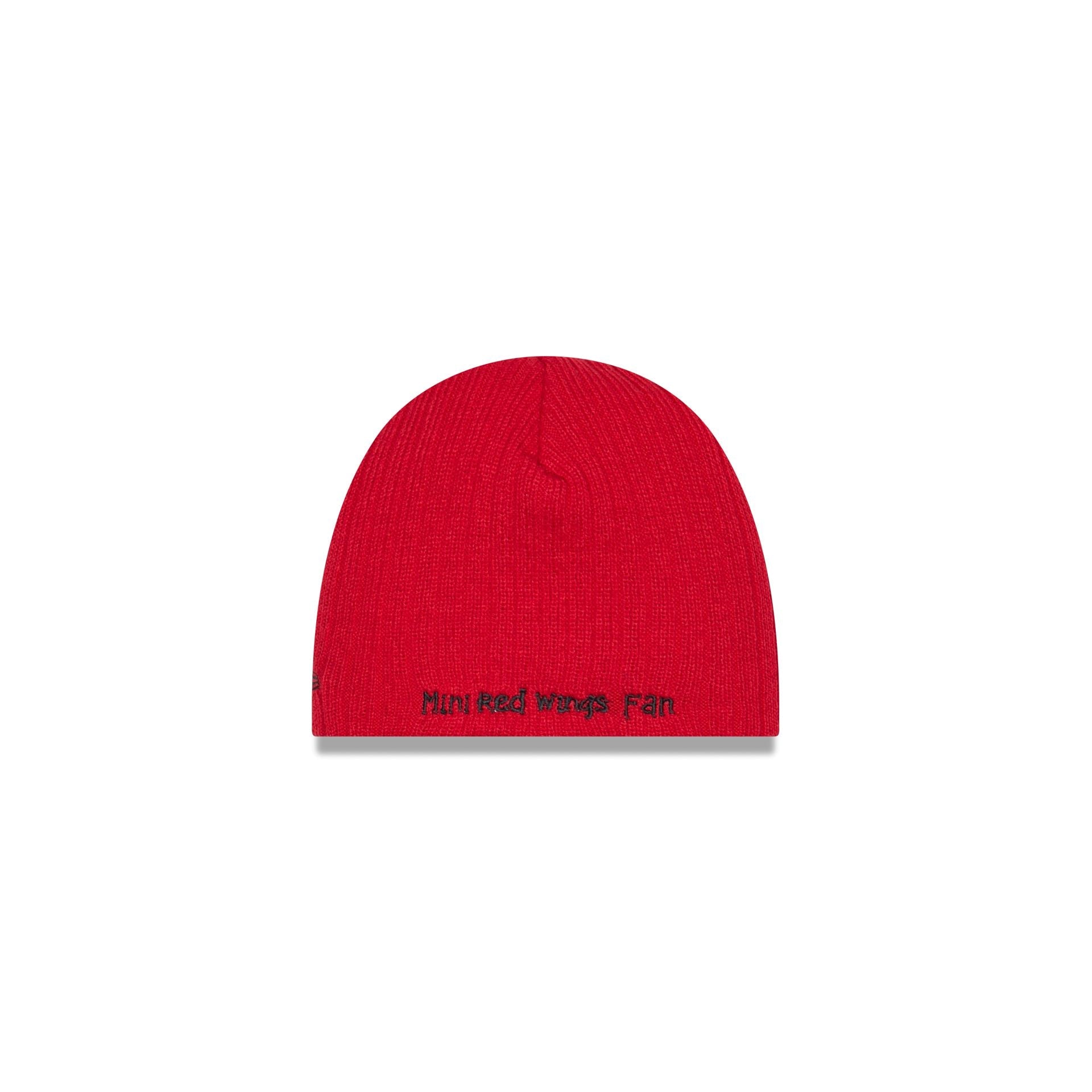The Detroit Red Wings Mini Fan Kids Skull Knit features an embroidered Red Wings logo at the front with a mini fan script at the rear and New Era Flag at the left-wear side