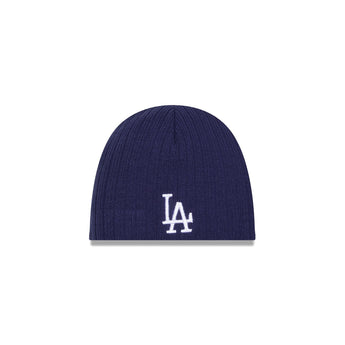 The Los Angeles Dodgers Mini Fan Kids Skull Knit features an embroidered Dodgers logo at the front with a mini fan script at the rear and New Era Flag at the left-wear side
