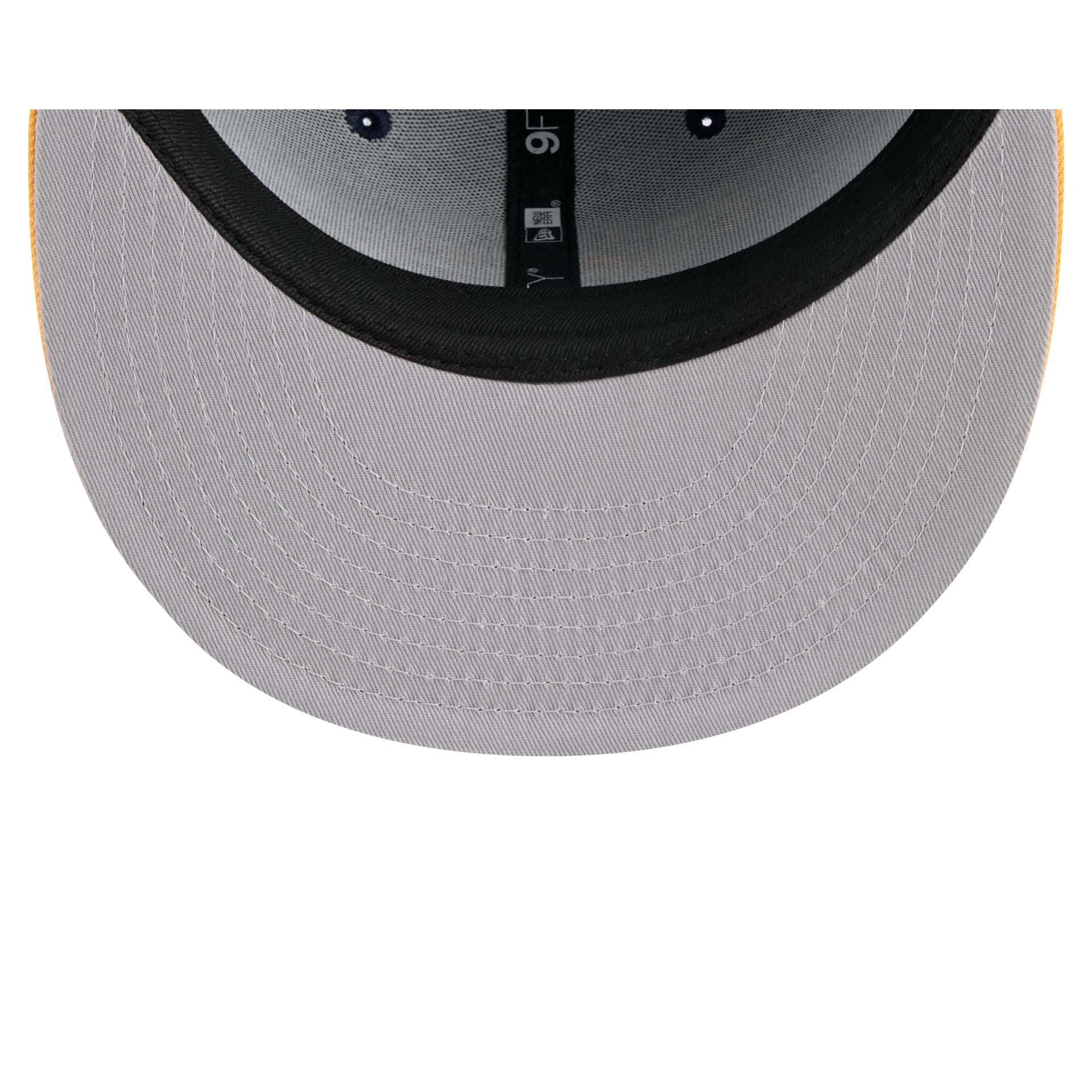 The Nashville Predators Team Color 9FIFTY Snapback features an embroidered Predators logo at the front panels with a matching visor, a gray undervisor, and a snapback closure at the rear.