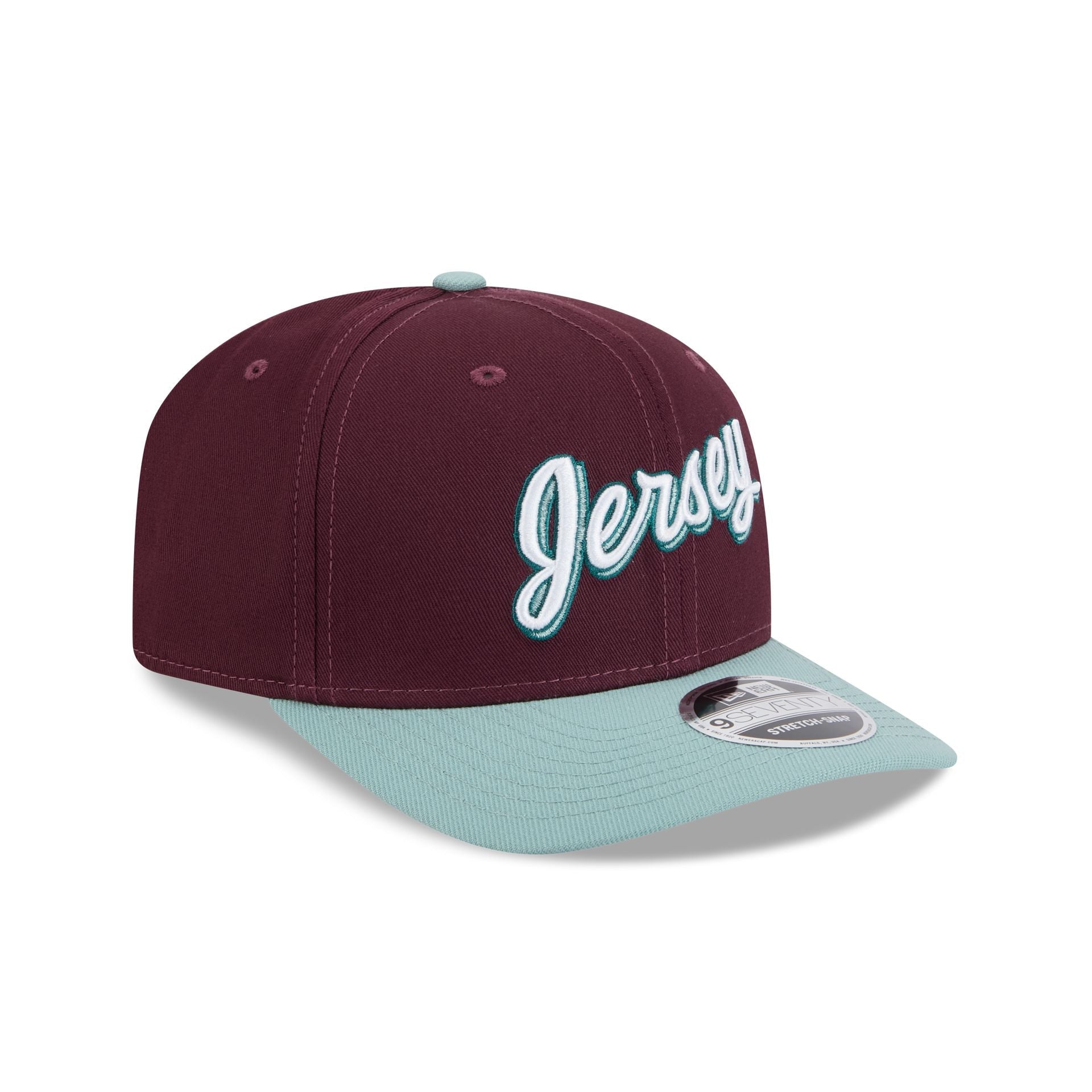The New Jersey Devils Maroon 9SEVENTY Stretch-Snap features an embroidered Devils logo at the front panels with a snapback closure at the rear and a teal undervisor.