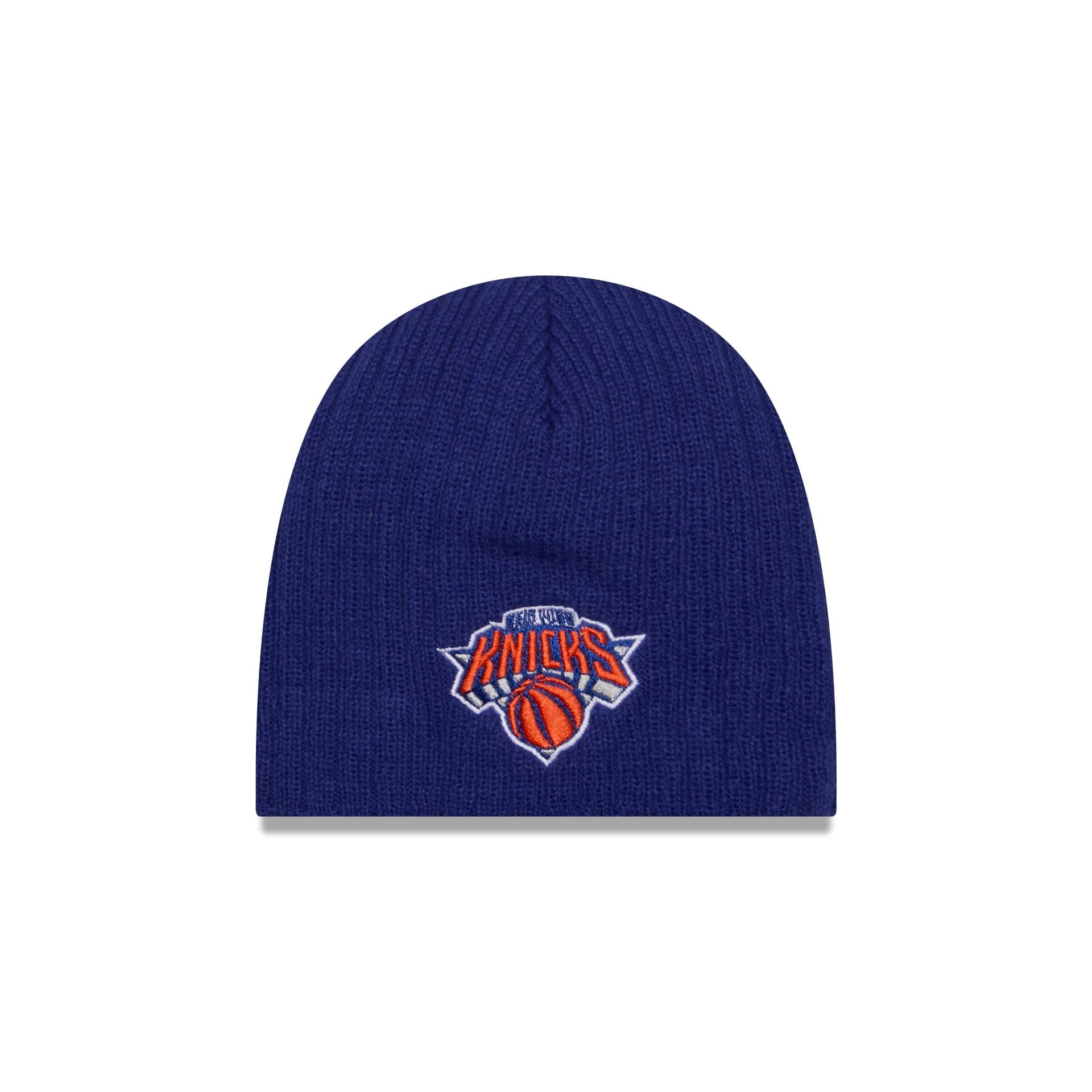 The New York Knicks Mini Fan Kids Skull Knit features an embroidered Knicks logo at the front with a mini fan script at the rear and New Era Flag at the left-wear side