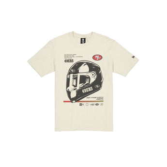 The San Francisco 49ers Modern Speed Stone T-Shirt features a screen-printed 49ers helmet graphic a the front with team logos and wordmarks throughout.