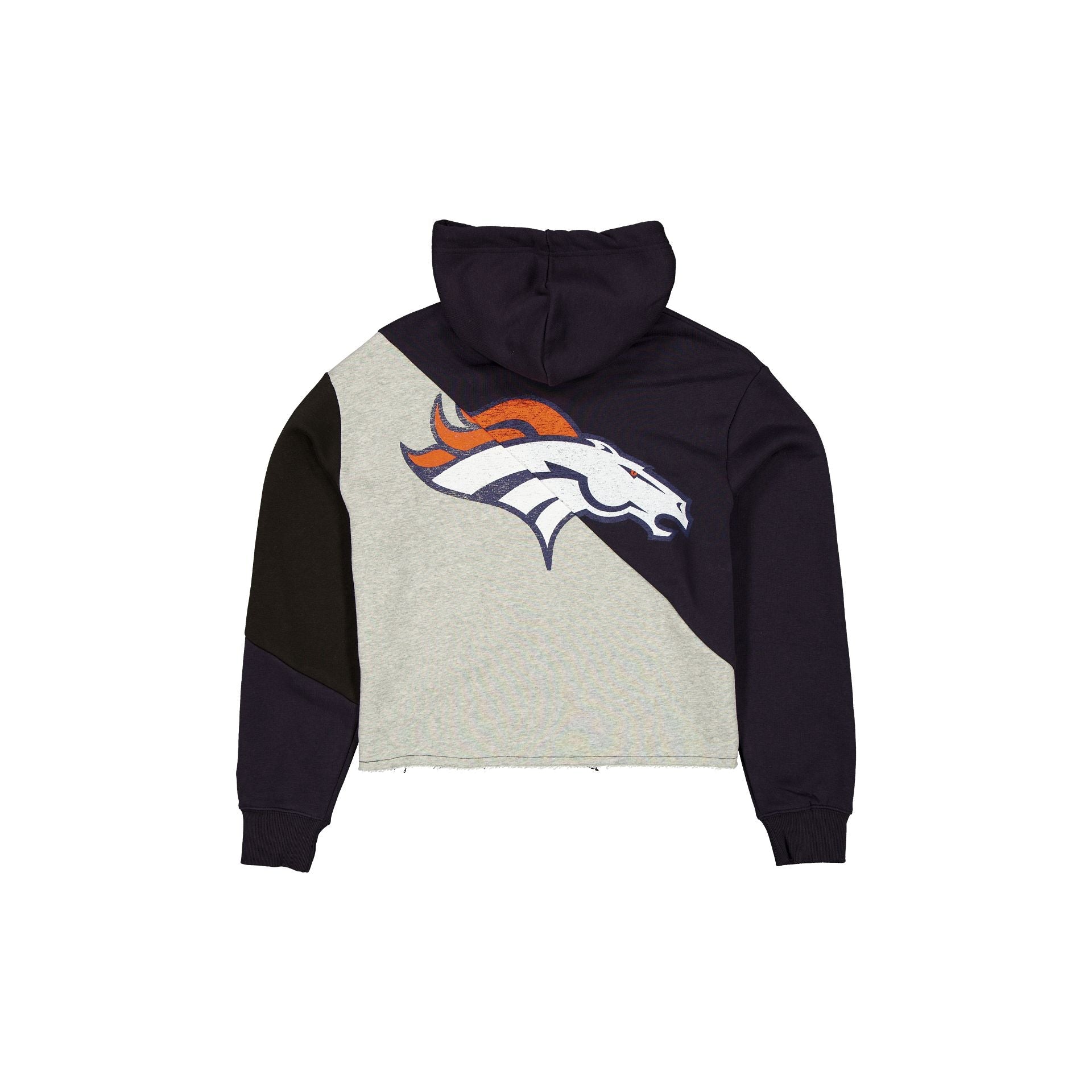 The Denver Broncos Team Split Women's Hoodie features a washed screen-printed Broncos split logo graphic at the front and rear with adjustable drawstrings at the hood.