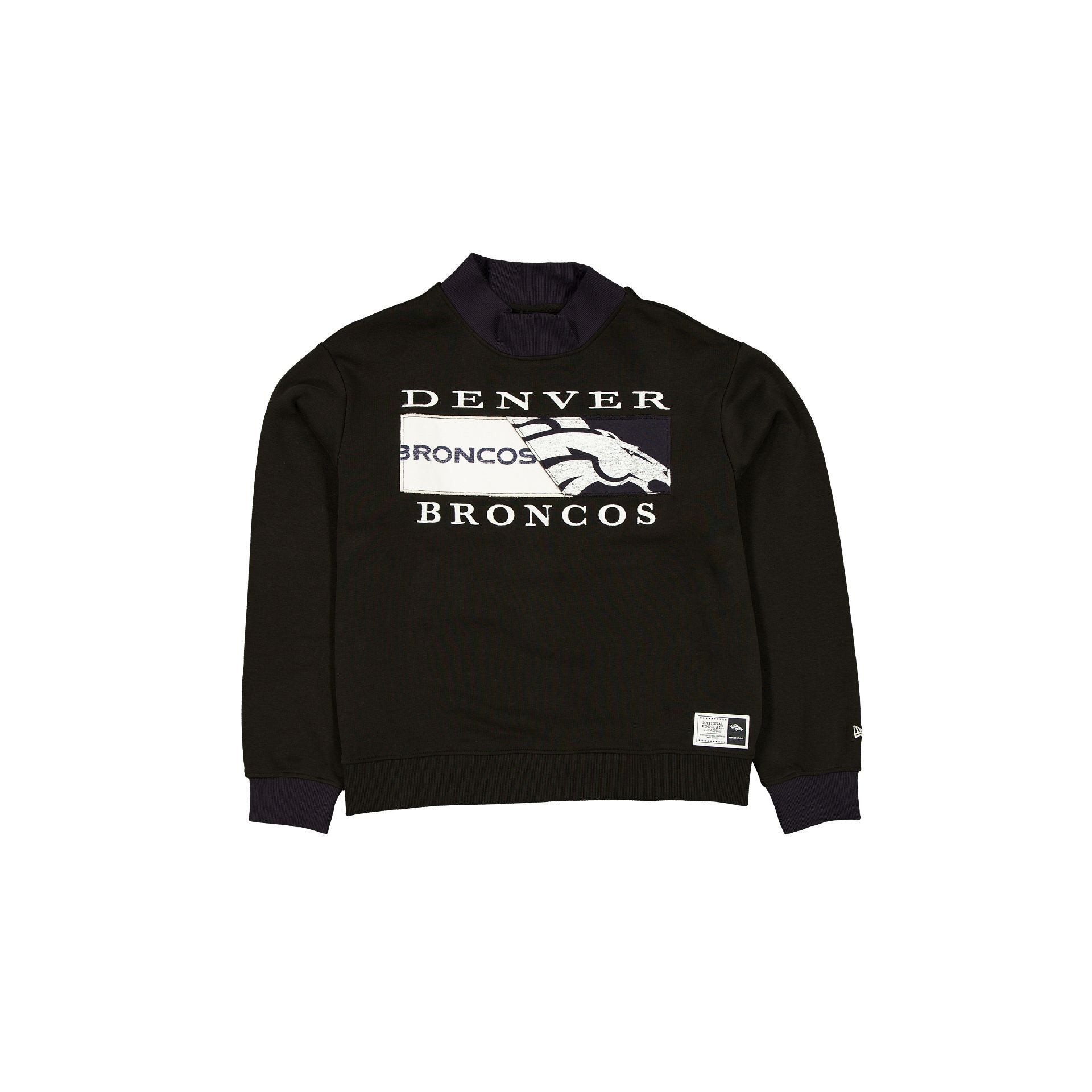 The Denver Broncos Team Split Women's Mockneck features a printed self fabric applique Broncos split logo graphic at the front.