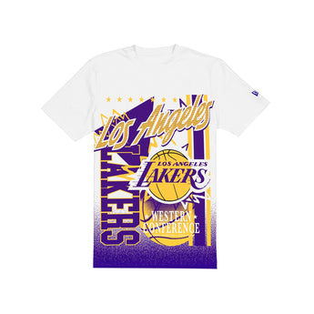 The Los Angeles Lakers Sport Classics White Short-Sleeve T-Shirt features a screen-printed Lakers graphic at the front.