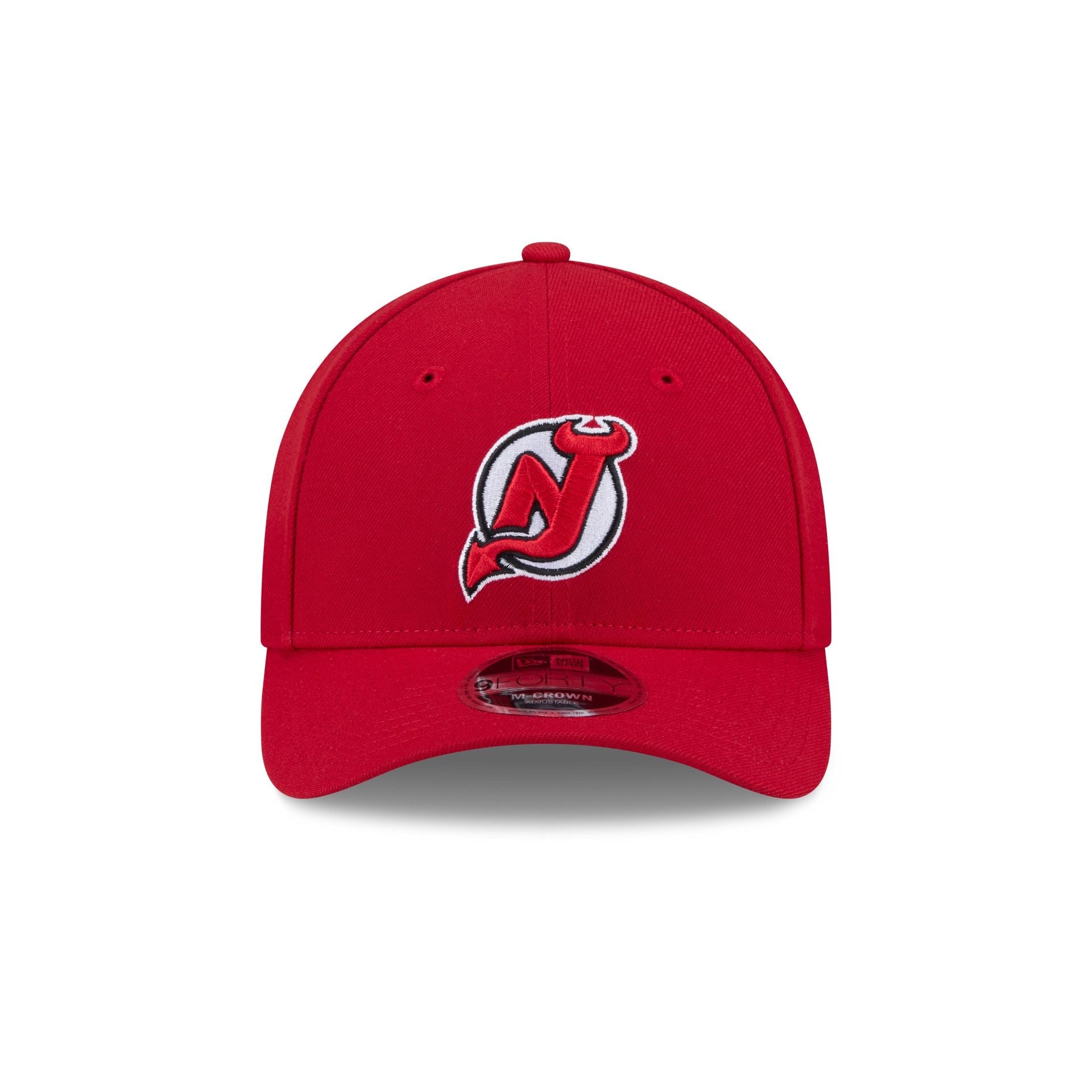 The New Jersey Devils Team 9FORTY M-Crown Snapback features an embroidered Devils logo at the front panels with the NHL Shield logo above an adjustable snapback closure at the rear and a gray undervisor.