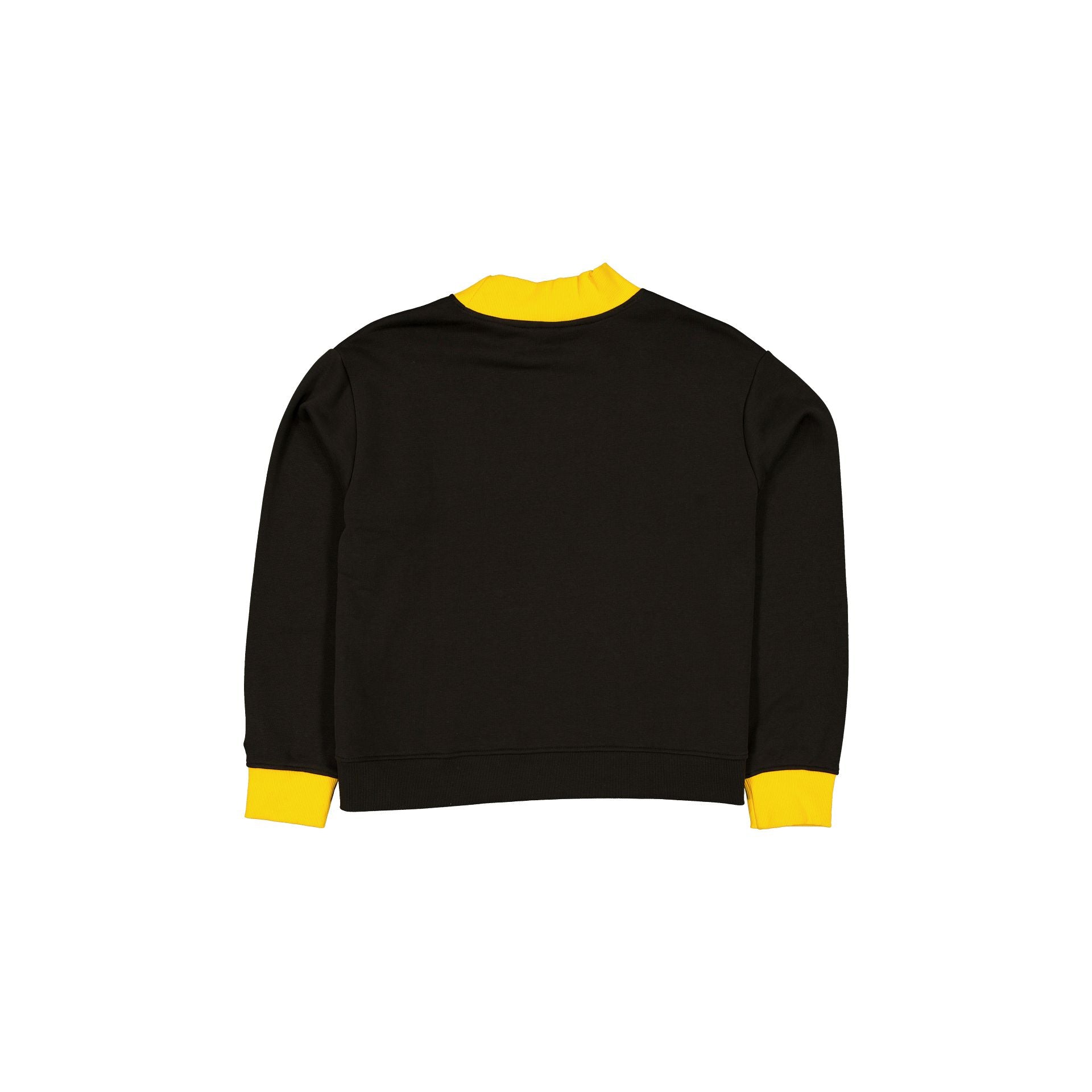 The Pittsburgh Steelers Team Split Women's Mockneck features a printed self fabric applique Steelers split logo graphic at the front.