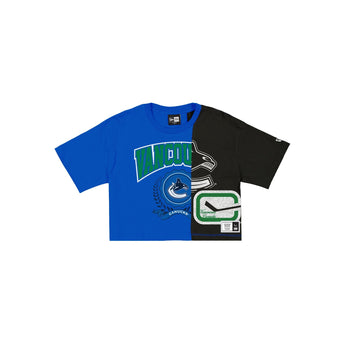 The Vancouver Canucks Team Split Women's Short-Sleeve T-Shirt features a screen-printed Canucks split logo graphic at the front.
