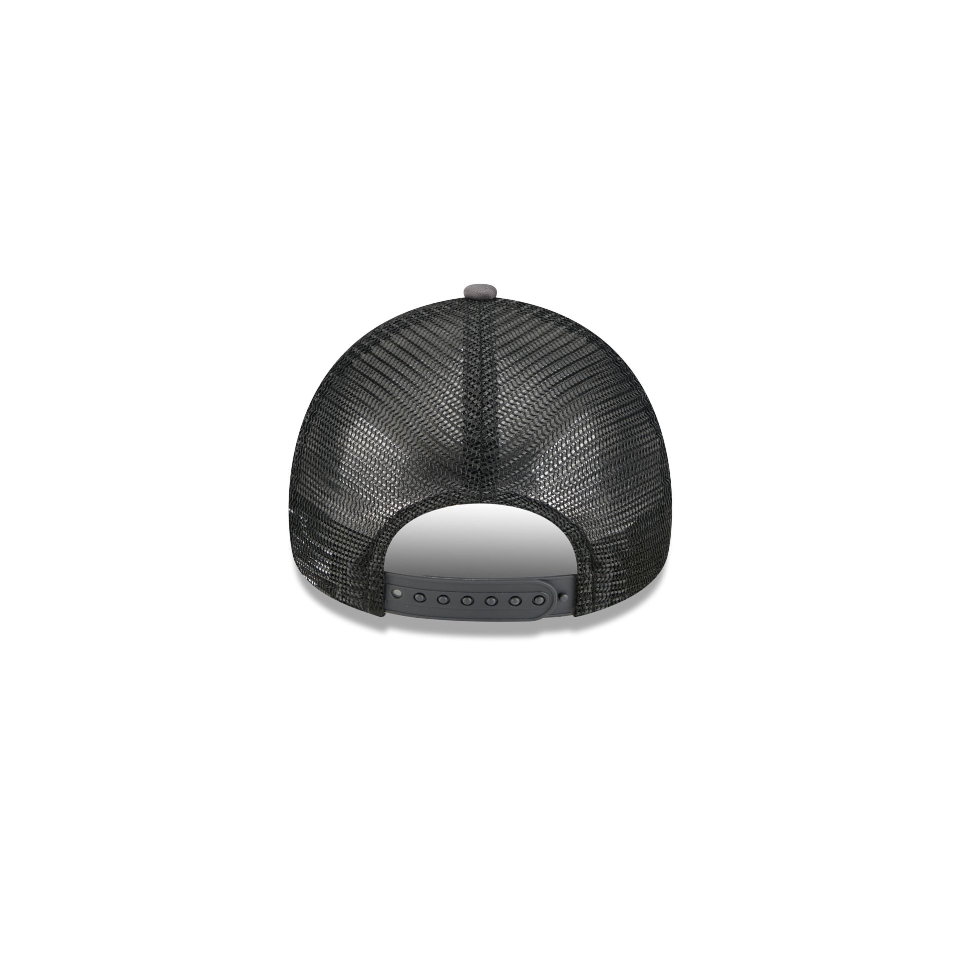 The Vegas Golden Knights Shine Kids 9FORTY A-Frame Trucker features a screen-printed Golden Knights graphic at the front panels with an adjustable snapback closure at a mesh rear.