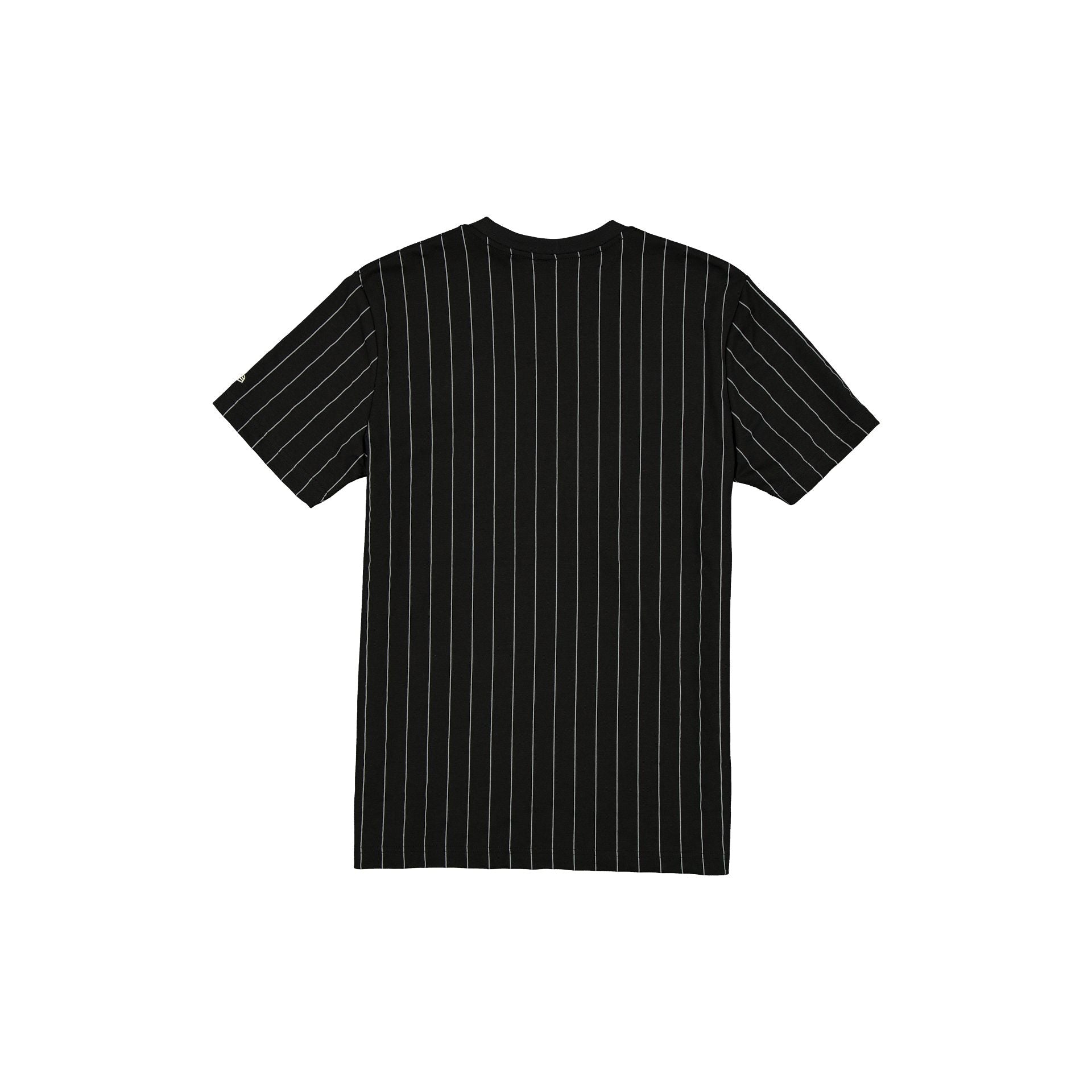 The Vegas Golden Knights Throwback Retro Pinstripe T-Shirt features an embroidered Golden Knights wordmark at the front with a twill applique logo at the left chest.