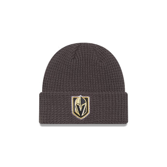 The Vegas Golden Knights Waffle Stitch Knit Beanie features an embroidered Golden Knights logo at the front cuff with a waffle stich throughout.
