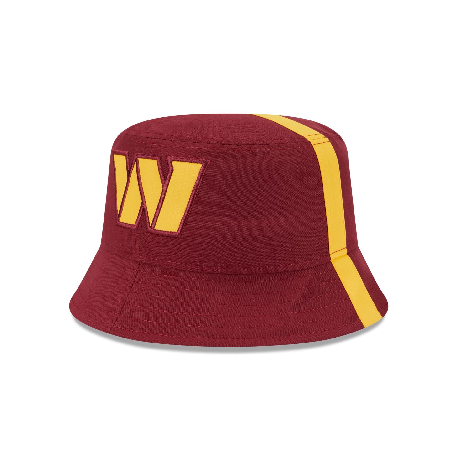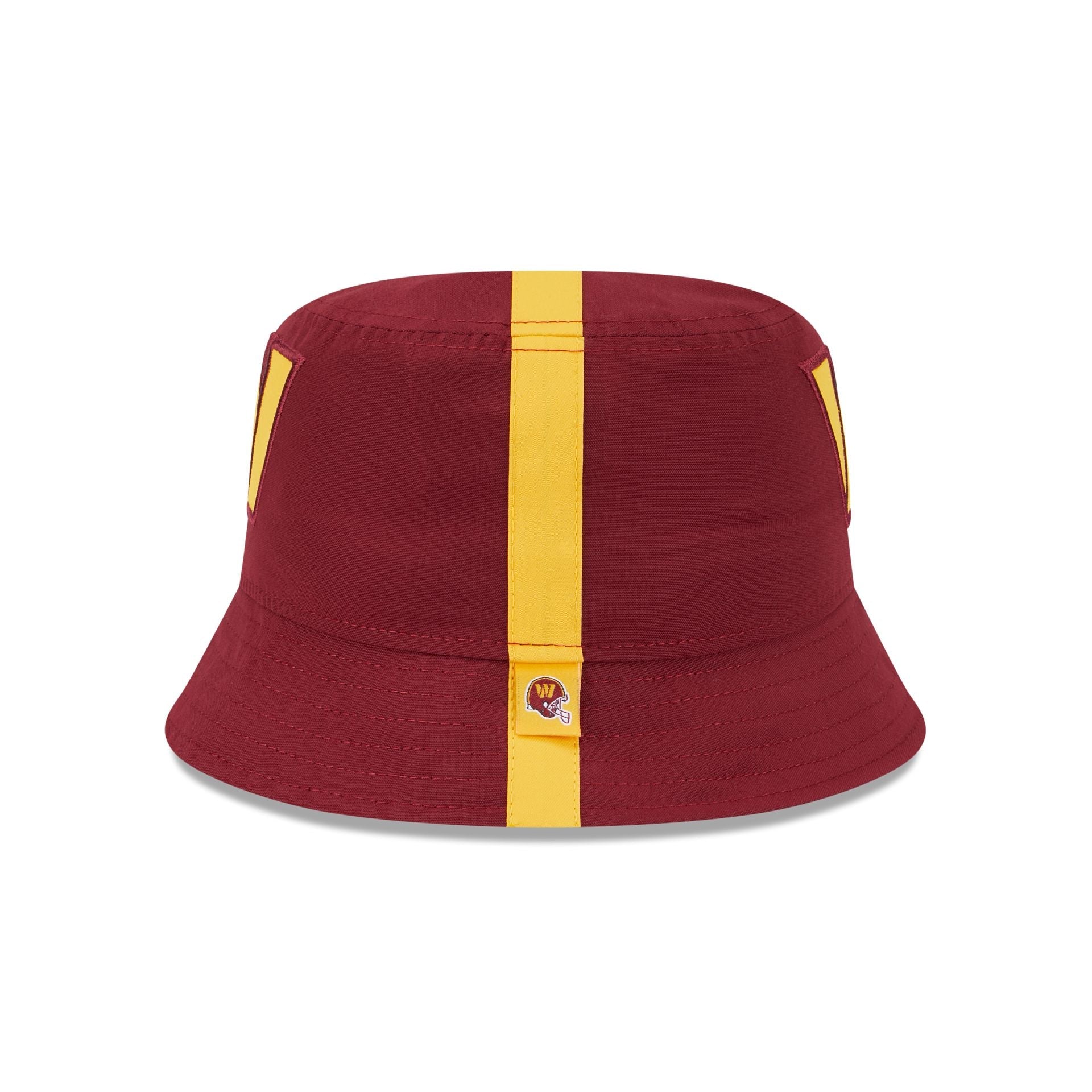The Washington Commanders Helmet Bucket Hat features an embroidered Commanders helmet design throughout.
