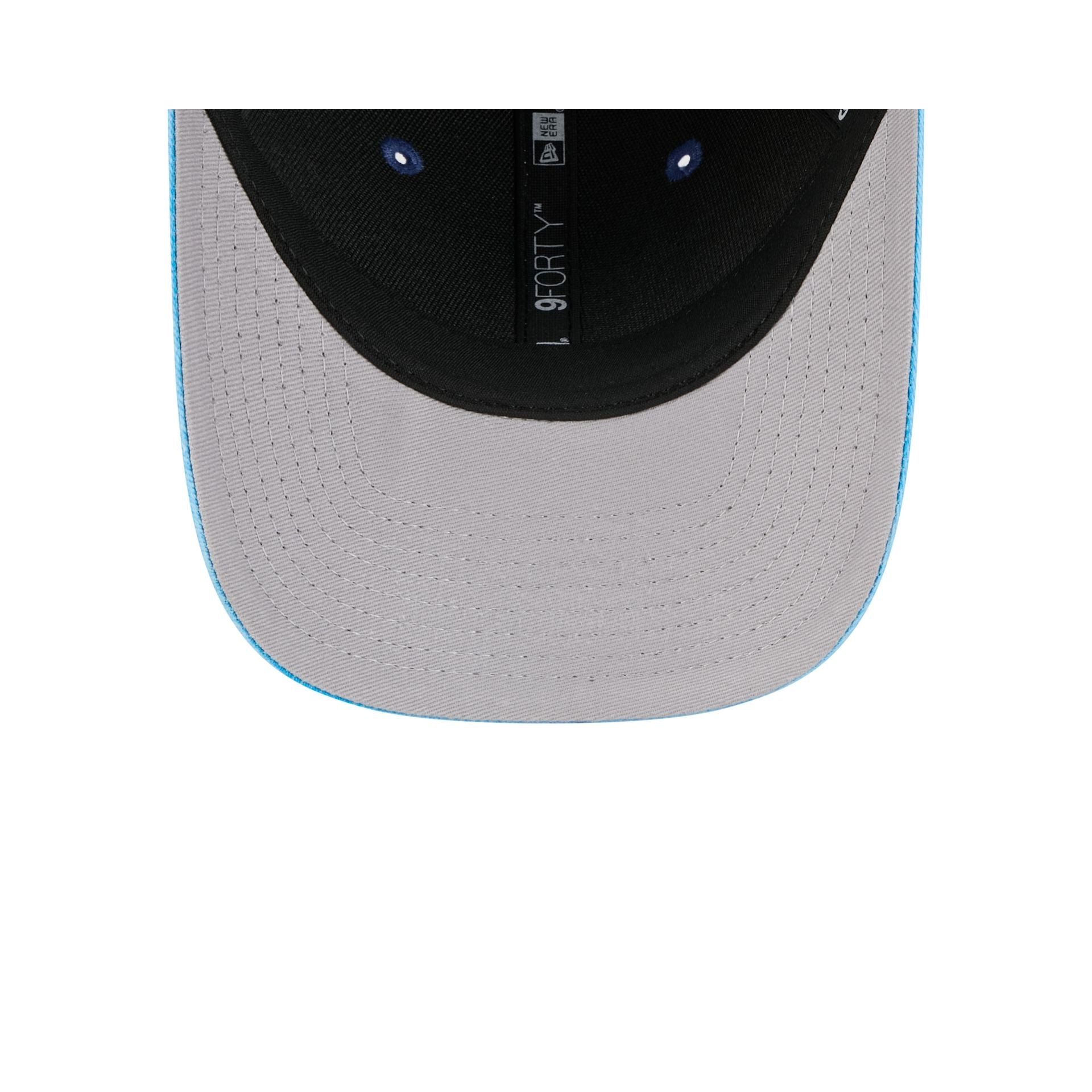 The Winnipeg Jets Mascot 9FORTY M-Crown Snapback features an embroidered Jets logo at the front panels with a team logo at the right-wear side. Additional details include the mascot's name above an adjustable snapback closure at the rear and a gray undervisor.