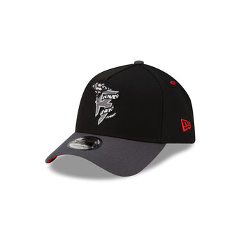 The Wisconsin Timber Rattlers Halloween Red 9FORTY A-Frame Snapback features an embroidered Timber Rattlers themed logo at the front panels with an adjustable snapback closure at the rear, a gray visor, and a red undervisor.
